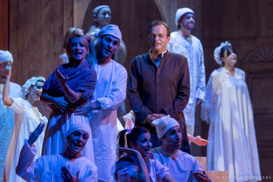 Si, qualche cambiamento c’è stato, 44 anni sono tanti e piccole modifiche fanno solo che bene alla compagnia e al testo, ma sono minime. Una canzone più corta, un’altra che si allunga un pochino, qualche battuta tagliata e più spazio all’improvvisazione. I vestiti più colorati, a dare forse, un’idea di colori del mondo, di umanità, quell’umanità che Don Silvestro vuole salvare e pur di farlo va contro Dio, suo “datore di lavoro”.