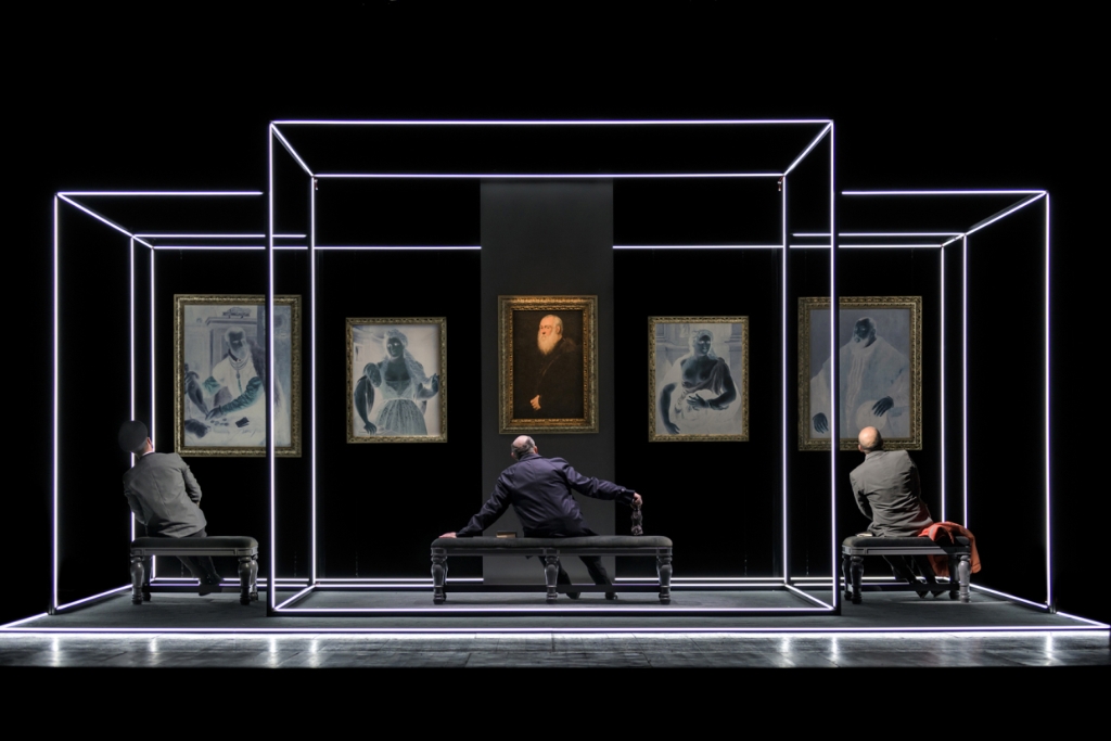 Nella Sala Bordone della Pinacoteca di Vienna, un uomo — un musicologo — si siede e guarda un famoso quadro di Tintoretto. Scopriremo che compie questo rito, ogni due giorni, da più di trent’anni. Un secondo uomo — uno scrittore — più giovane, osserva il primo uomo che guarda il quadro. Un terzo uomo — uno dei custodi della Pinacoteca — osserva entrambi.