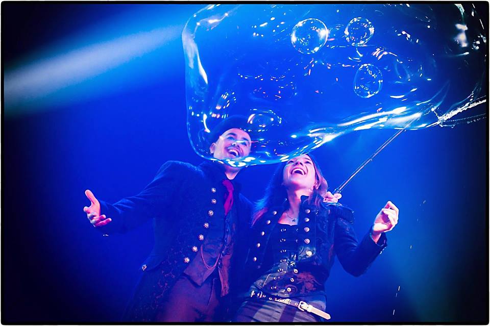 – la luce – in una forma mai vista prima d’ora. Il tutto presentato con la destrezza e la maestria che con-traddistinguono Marco Zoppi e Rolanda e che li portano a detenere saldamente, sin dal 2014, il titolo di migliori Artisti delle Bolle di Sapone Europei.