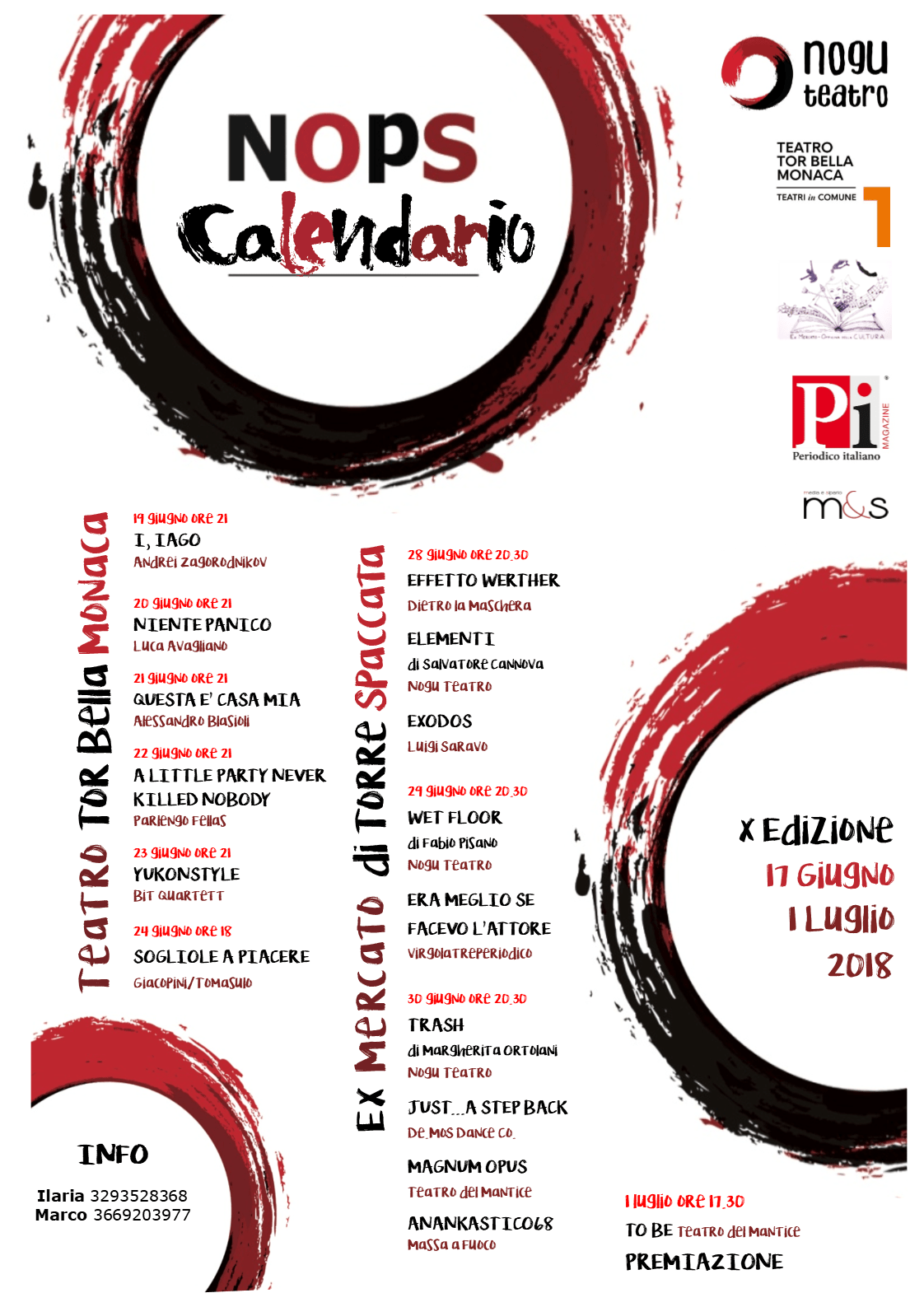 Nogu Teatro presenta la decima edizione del NOpS festival (Nuove Opportunità per la scena) dedicato alle realtà teatrali emergenti. Mettendo a frutto gli incontri delle scorse edizioni, quest’anno il NOpS diventa una vera e propria vetrina di teatro contemporaneo, in cui gli operatori potranno attingere tra le nuove proposte delle giovani realtà.