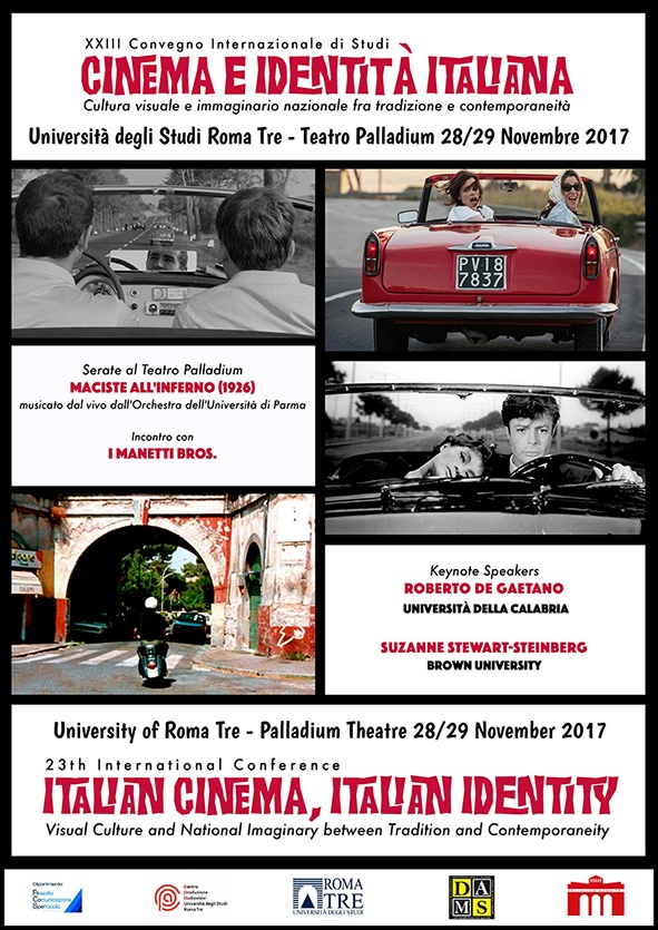 Dal 28 al 29 novembre presso l’Università di Roma Tre (Polo aule DAMS, via Ostiense 139), si svolgerà la XXIII edizione del Convegno internazionale di studi promosso dal Dipartimento Filosofia Comunicazione e Spettacolo, in collaborazione con il Centro Produzione Audiovisivi – Università Roma Tre, curato da Stefania Parigi, Christian Uva e Vito Zagarrio. Il tema proposto, Cinema e identità italiana. Cultura visuale e immaginario nazionale fra tradizione e contemporaneità, pone al centro il profilo e il carattere di una nazione così come sono stati interpretati e restituiti dal cinema, dai media e dalla cultura visuale.