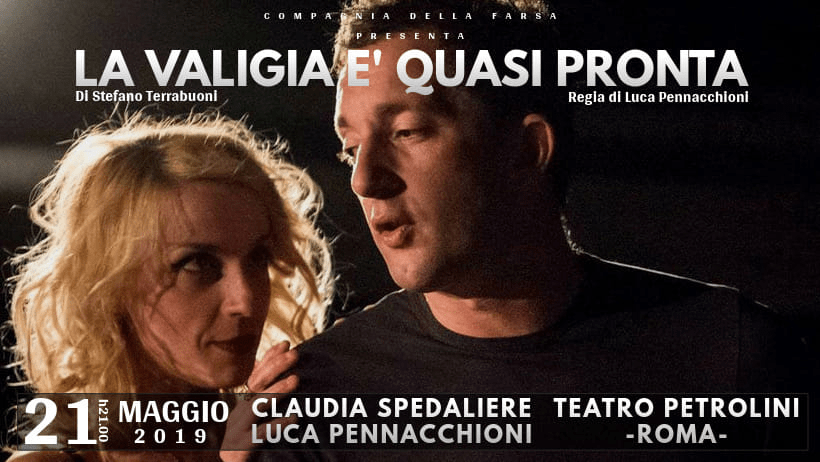 Un uomo e una donna che, nella metafora del viaggio, si misurano con tutti gli ostacoli che spesso ci impediscono di intraprendere un cambiamento. Alla fine, il viaggio è quello che dobbiamo fare dentro di noi. Si ride e si riflette ne “La valigia è quasi pronta” la nuova commedia firmata da Stefano Terrabuoni per la regia di Luca Pennacchioni e con lo stesso regista in scena insieme a Claudia Spedaliere. La commedia in scena il 21 maggio è un’anteprima dello spettacolo che tornerà in programmazione al Teatro Petrolini il prossimo anno con la Compagnia della Farsa.