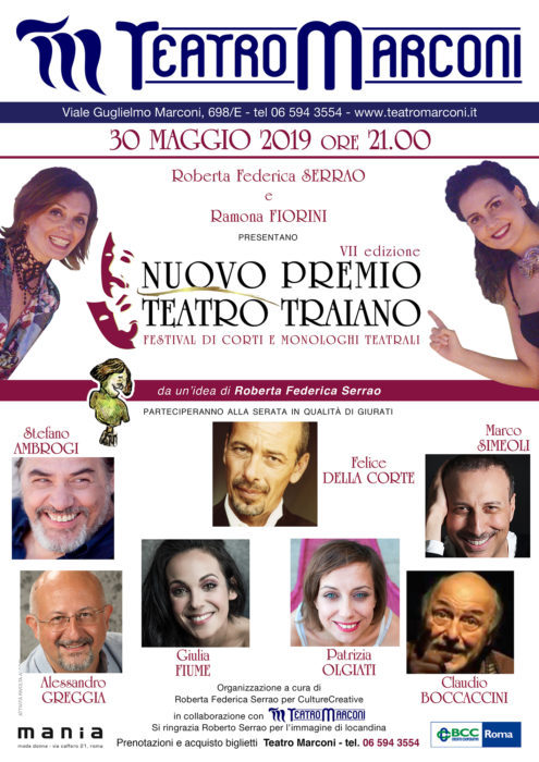 Il 30 maggio i giovani talenti aspettano voi!!! Il Teatro Marconi vi dà appuntamento per la Finale del NUOVO “Premio Teatro Traiano”, Festival Nazionale di corti e monologhi teatrali giunto alla sua VII Edizione. Un appuntamento sempre più atteso dai giovani autori e attori che desiderano sperimentare e mettersi in gioco presentando i loro inediti. Nella serata vedremo rappresentate le nove proposte che hanno superato le tre fasi di selezione su testo.