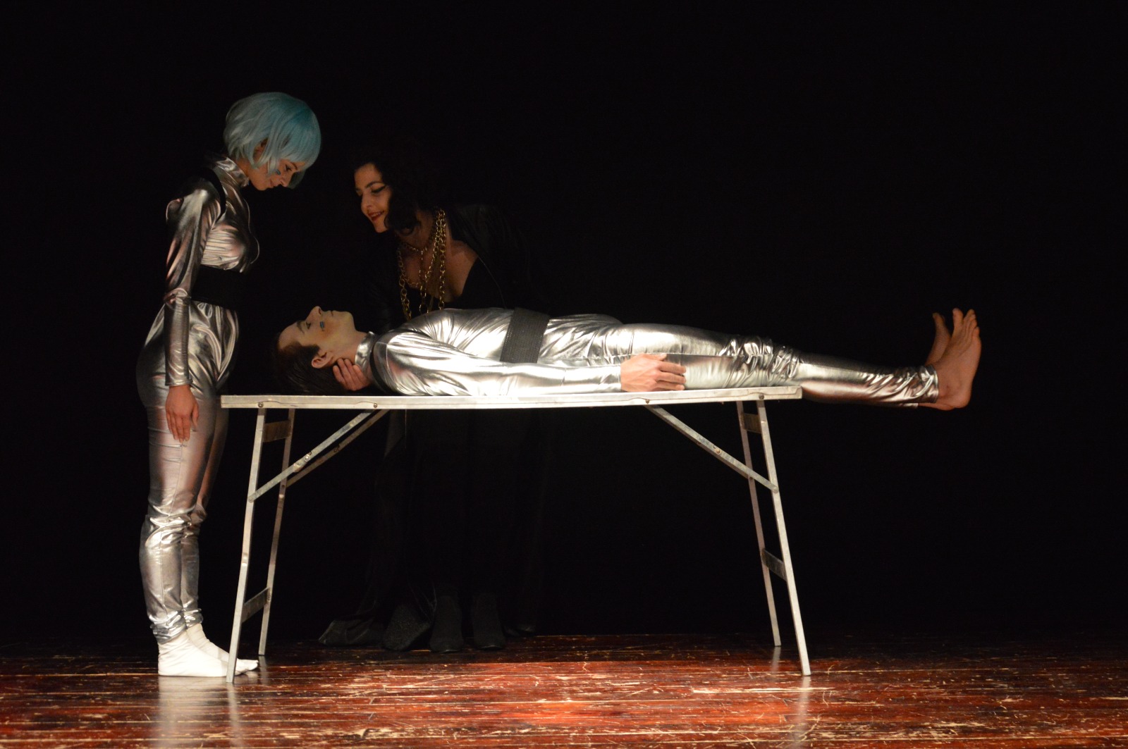 La Medea dello spettacolo si ritrova in un mondo nuovo, in una società che, di per sé, ha lasciato già quel sentimento d’amore che portano l’una verso l’altro: i figli non vengono concepiti ma costruiti, perché sono automi e come tali vengono programmati secondo le esigenze del mondo. Eppure Medea, a capo dell’industria che costruisce e controlla i robot, li ama, in particolare due che “cresce” come figli. Li programma provando a renderli autonomi, capaci di provare emozioni che li avvicinino agli umani e si ribella a coloro che li vogliono diversi. Il suo risentimento è rivolto a chi, per seguire i suoi scopi, l’accusa di azioni che lei non ha fatto. E qui rientra nel testo la sua travagliata storia. Bello e intenso il monologo di Medea accasciata a terra mentre stringe a sé i suoi “figli”. Parole dure in cui la donna racconta il suo tormento da dannata a causa delle azioni degli altri. Anche i due robot si allenano a vivere con i sentimenti, che non sono mai sempre positivi, ma sono il turbinio di sensazioni che avvolgono l’anima, tra cui il dubbio.