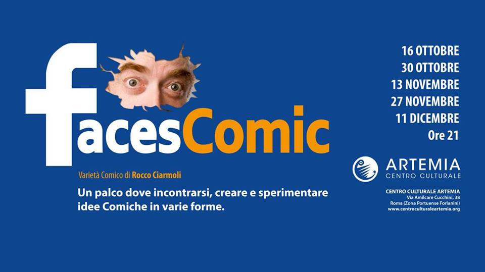 FACESCOMIC è un format di Varietà Comica che vede come protagonisti un cast di notissimi artisti comici e di varietà professionisti che prima di portare i propri numeri sia in TV piuttosto che all’interno di spettacoli teatrali più grandi, hanno bisogno del confronto con il pubblico per “provare” i loro pezzi. In questo modo, il pubblico del Centro Culturale Artemia, a martedì alterni, avrà la possibilità di vedere in anteprima le divertentissime nuove trovate di questi meravigliosi artisti, e di scoprire che “fare da cavia” può anche essere mooooooolto divertente.