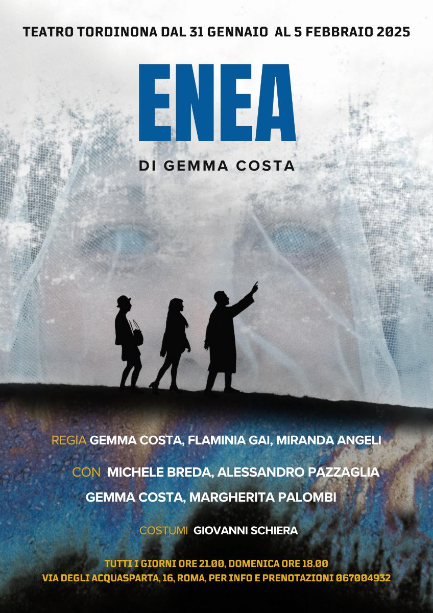 Il racconto di un nuovo Enea, in scena dal 31 gennaio al 5 febbraio al Teatro Tordinona di Roma, che vede la scrittura di Gemma Costa, la regia a tre di Gemma Costa, Flaminia Gai, Miranda Angeli, in scena Michele Breda, Alessandro Pazzaglia, Gemma Costa, Margherita Palombi. Tra la fantasia smisurata e la realtà, Enea si imbarca per un viaggio surreale, accompagnato da Claire e Luigi Sofia Alexander IV. A raccontarci dello spettacolo Gemma Costa, autrice, regista e interprete della pièce.