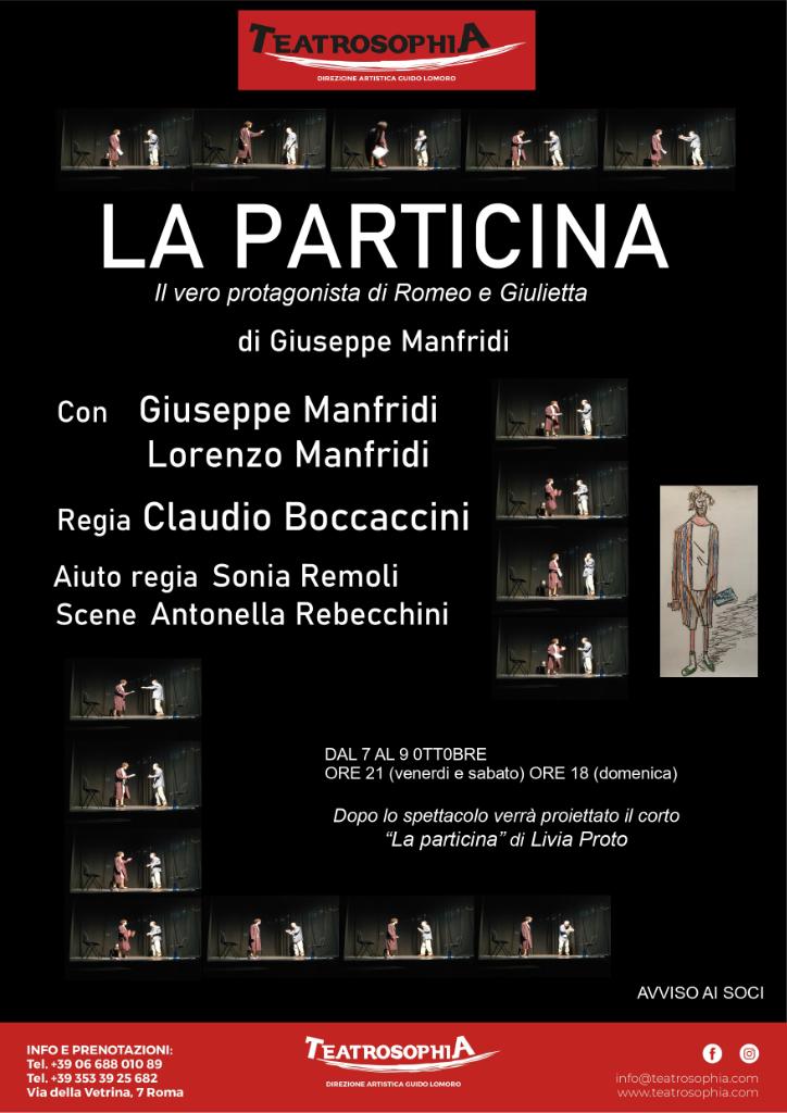 Giuseppe Manfridi e Lorenzo Manfridi saranno in scena dal 7 al 9 ottobre al Teatrosophia di Roma con lo spettacolo La particina (il vero protagonista di Romeo e Giulietta), scritto dallo stesso Manfridi per la regia di Claudio Boccaccini. Chi è l’attore che interpreta particine e chi è la “tinca”? Prova a spiegarlo in questo testo teatrale Giuseppe Manfridi a cui abbiamo rivolto alcune domande e che ringraziamo per la sua disponibilità.