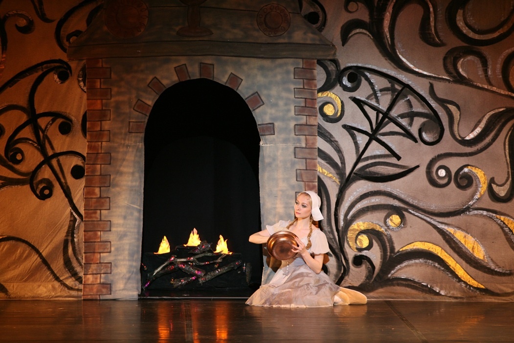 La vita di Cenerentola è una vita di fatica e di miseria. Lei è trattata come una schiava dalla matrigna crudele ed egoista ed è costretta a fare lavori domestici per tutta la famiglia. Durante i rari momenti di riposo dai suoi compiti onerosi, Cenerentola si siede vicino alle fiamme guizzanti del camino e sogna una vita felice lontano da quello che lei è costretta a subire. La matrigna cattiva ricerca solamente il prestigio personale e delle proprie figlie per diventare dama dell’alta società. In preparazione per il prossimo Ballo Reale, la matrigna si assicura che la propria casa sia frequentata da mercanti, cavalieri di corte e musicisti al fine di insegnare alle proprie figlie le buone maniere ed il galateo. Nel giorno tanto atteso, arriva il messo reale a consegnare gli inviti per il Ballo per la matrigna e le sorellastre, ma purtroppo non per la povera Cenerentola. Il giorno del ballo quest’ultima aiuta le sorelle a cucire, stirare e inamidare i vestiti per farle apparire curate e all’ultima moda. La matrigna e le sorellastre escono incuranti di Cenerentola che triste piange accanto al fuoco. Improvvisamente appare la Fata Madrina che promette a Cenerentola che il suo sogno di andare al ballo reale si avvererà! Come per magia tutta la cucina magicamente si trasforma in un giardino incantato e le Fate della stagione appaiono portando doni per aiutare Cenerentola a realizzare il suo sogno. La Fata Madrina come tocco finale le dona un bellissimo abito da ballo e un paio di scarpette di cristallo. Cenerentola è quindi pronta ad andare al ballo. Prima di andare via, la Fata Madrina avverte Cenerentola che allo scoccare della mezzanotte l’incantesimo svanirà e si ritroverà vestita nuovamente di stracci.