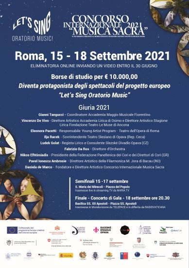 Il Concorso Internazionale Musica Sacra 2021 cerca 8 cantanti per il progetto europeo Let’s Sing Oratorio Music
