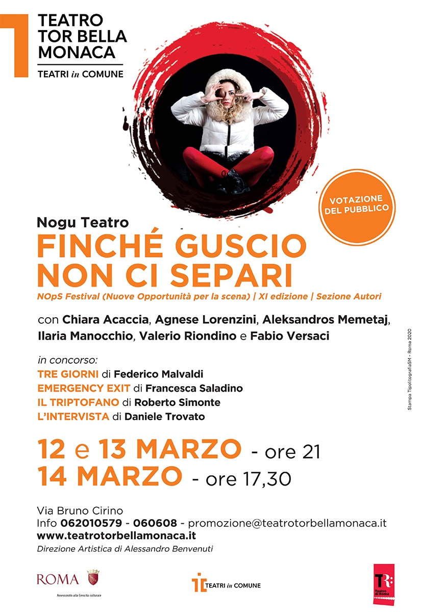 Giovedì 12 e venerdì 13 marzo alle ore 21 e sabato 14 marzo alle ore 17:30 al Teatro Tor Bella Monaca in scena FINCHÉ GUSCIO NON CI SEPARI, lo spettacolo della SEZIONE AUTORI dell’undicesima edizione del NOpS Festival.