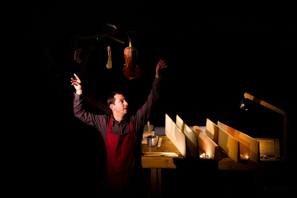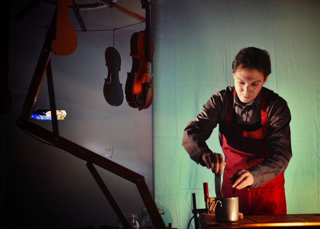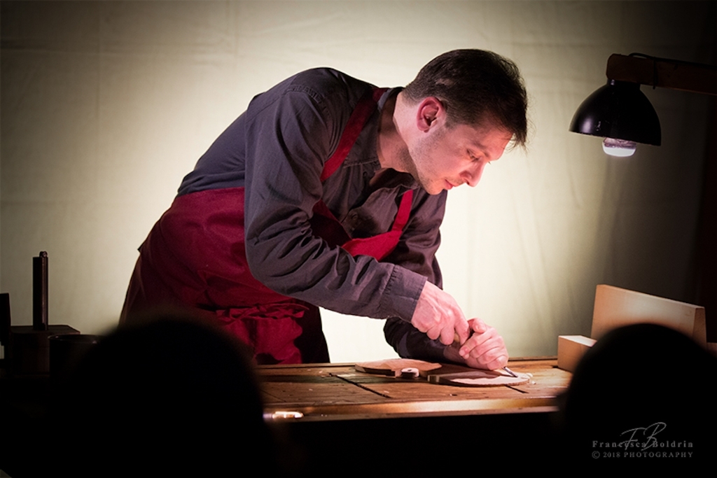 Il testo è nato quasi tutto da improvvisazioni che poi sono state trascritte e messe in ordine per creare una drammaturgia funzionale. Le improvvisazioni ovviamente si basavano su una conoscenza acquisita in un periodo lungo oltre quattro anni di ricerche sulla liuteria, di incontri con i liutai e di pratica di costruzione degli strumenti.