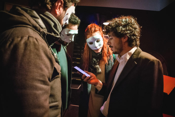 Facciamo i complimentoni al regista. Un impianto a orologeria impeccabile. Ogni personaggio ha la sua storia, interagisce col pubblico in una prova di improvvisazione davvero ben sostenuta da tutti, e gli incontri apparentemente casuali accadono con naturalezza, come se non fossero scritti su copione. Più volte nella stessa serata, senza intoppi. Succede sempre qualcosa, in più luoghi contemporaneamente, e lo spettatore ha la libertà di muoversi a proprio piacimento tra le sottotrame.