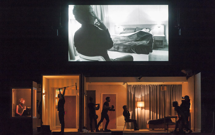 Katie Mitchell costruisce sul palcoscenico un set con tre macchine da presa che seguono morbosamente, in presa diretta, la dinamica tra i due protagonisti; l’obiettivo vero dell’osservazione non sono i singoli personaggi quanto le categorie che rappresentano, i generi: il Maschile e il Femminile. Un viaggio nelle pieghe più profonde dell’eros, tra voyeurismo e pornografia. L’intento è quello di restituire la profondità del divario che separa l’uomo e la donna, il maschile e il femminile.