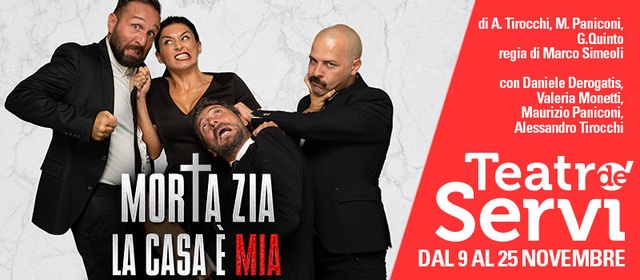 In scena al Teatro de’ Servi, fino al 25 Novembre, trovate “Morta zia la casa è mia!” scritto da Gianni Quinto, regia di Marco Simeoli. Con Daniele Derogatis, Valeria Monetti, Maurizio Paniconi e Alesssandro Tirocchi.