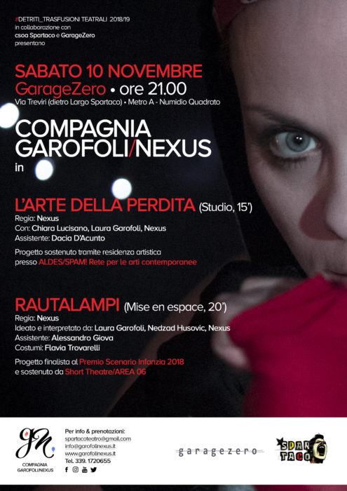 La Compagnia Garofoli/Nexus è lieta di presentare a Roma i primi esiti di un intenso anno di ricerca e creazione artistica all’interno di una serata allestita presso lo spazio espositivo GarageZero e divisa in due parti.