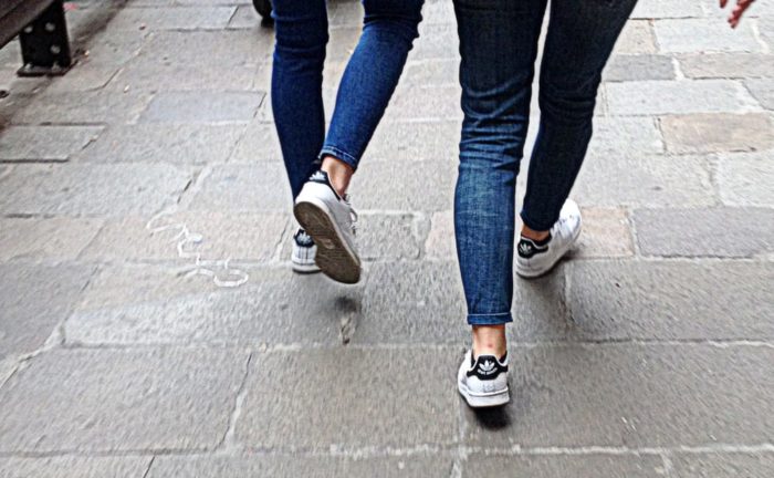 Scarpe da ginnastica, o stivali. I calzini dicono che li hanno messi, ma io non li vedo mai, ho invece modo di vedere un malleolo e una deliziosa caviglia ‘nude look’.