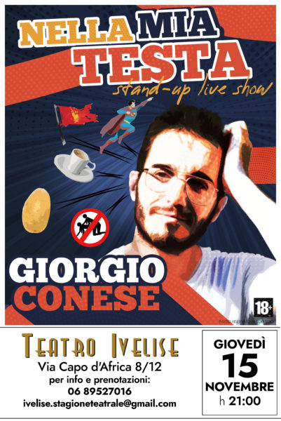 Giovedì 15 novembre alle ore 21.00, Teatro Ivelise vedrà in scena il primo spettacolo di stand – up comedy nella storia della sue stagioni teatrali: “Nella mia testa” di Giorgio Conese.