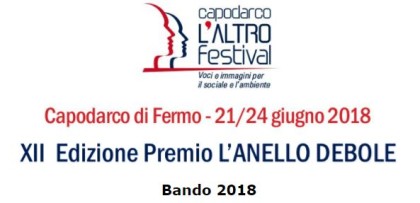 Il premio L’anello debole sarà assegnato nella serata finale del “Capodarco l’Altro Festival”, previsto dal 21 al 24 giugno 2018 sulla terrazza della Comunità di Capodarco di Fermo, nelle Marche.