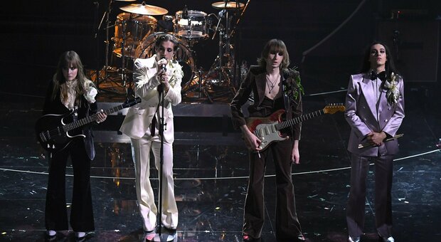 Tanti gli ospiti presenti sul palco e i primi sono i Maneskin reduci dal trionfo dell’anno scorso sullo stesso palco, ma anche dalla vittoria all’Eurovision Song Contest 2021 e dal successo planetario che li sta accompagnando in giro per il mondo, con concerti, collaborazioni e apprezzamenti per la giovane band italiana, che da cenerentola è salita alla ribalta della musica internazionale. Giovani, eleganti e pieni di rock, i Maneskin omaggiano il palco di Sanremo che è tutto dalla loro parte. Due brani quelli che hanno regalato al pubblico: il successo sanremese “Zitti e Buoni” e la ballada dolce e rockeggiante “Coraline” ed è standing ovation per la band romana che ringrazia, mentre non passa inosservata, alla fine della seconda esibizione, la commozione di Damiano.