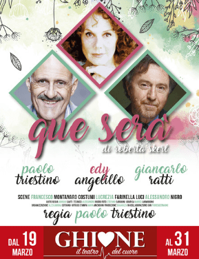 Il Teatro Ghione di Roma, presenta,da martedi 19 a domenica 31 marzo 2019 lo spettacolo Que Serà di Roberta Skerl,con Paolo Triestino, Edy Angelillo, Giancarlo Ratti,regia Paolo Triestino.Metti tre amici, da sempre e per sempre. Metti una cena d’estate tra profumi e note brasiliane, perchè l’allegria non manchi. Condisci il tutto in un giardino ad accogliere le parole, le risate ed i pensieri di Filippo, Giovanni e Ninni.Aggiungi infine che improvvisamente tutto cambi perché qualcosa di imprevisto, di molto imprevisto, accada e che ci si chieda cosa siamo disposti a fare per il nostro migliore amico.Ecco così servito Que Sera’, uno straordinario racconto di amicizia e, soprattutto, di vita.Roberta Skerl affronta con ironia, poesia e leggerezza, temi scomodi ma di grandissima attualità.Sul palco Paolo Triestino (anche regista), Edy Angelillo e Giancarlo Ratti, tre attori di lunga esperienza di commedia d’autore.