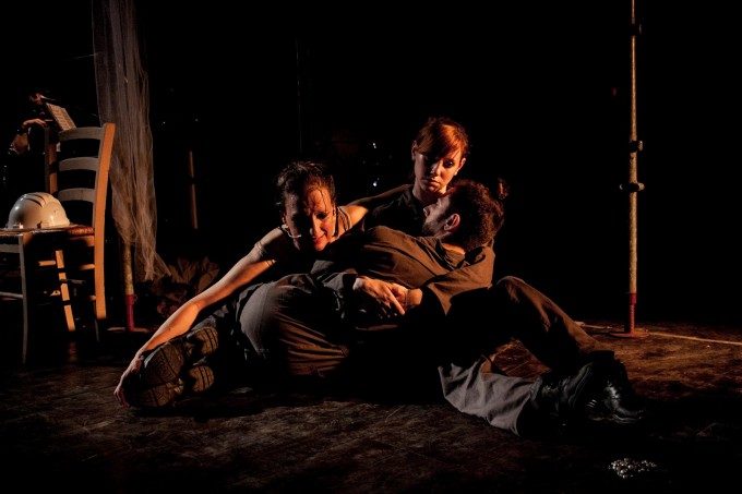 Sul palco un ponteggio a stimolare la tensione del lavoro, la necessità di sentire e vedere con i propri occhi la fatica giornaliera di chi lavora.
