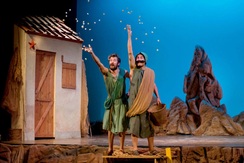 RUDENS è uno splendido esemplare in cui intravedere il passaggio dalla Commedia greca alla Commedia latina e a quella moderna, fino alla Commedia musicale, di cui Plauto può essere considerato il precursore. Lo spettacolare e divertente allestimento di Vincenzo Zingaro, proprio in forma di Commedia musicale, restituisce tutti gli aspetti del teatro plautino, in un “gioco attoriale” che recupera il filo che dal mondo classico si dipana fino a noi, enfatizzando tutti gli aspetti fiabeschi e fantastici dell’opera: un’isola costruita nel teatro, barche a vela che attraversano la platea per attraccare a un moletto a ridosso della scogliera, l’imponente tempio di Venere, all’ombra del quale si staglia la casa del vecchio Mormora, il cangiare del cielo dopo la tempesta, creano una dimensione incantevole che proietta gli spettatori fuori dal tempo. Una favola divertente per un pubblico di qualsiasi età, particolarmente adatta per trascorrere le Festività con tutta la famiglia. Lo spettacolo prevede la SERATA SPECIALE CAPODANNO con brindisi di mezzanotte, buffet dolce, riffa di capodanno e Festa con la Compagnia!