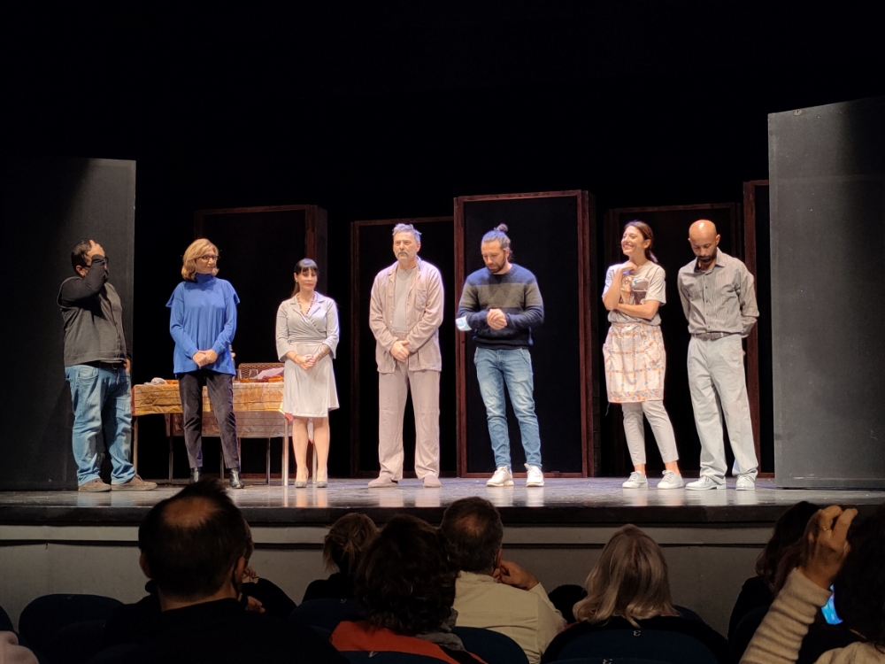 Che il testo sia molto sentito dal protagonista lo si percepisce fin dalle prime battute dello spettacolo e questo coinvolgimento si nota anche nei coprotagonisti che attraversano la storia e la scena insieme. Carlotta Ballarini, Antonello Pascale, Antonio Romano, Maria Scorza, sono un tutt’uno nel racconto, seguendo un’attenta regia, quella di Antonio Grosso, il quale ha sapientemente messo su una pièce che mantiene lo spettatore sempre vigile e attento. Buoni i tempi e i ritmi delle battute che scorrono in un affiatamento tra gli attori, restituendo un testo ricco di emozioni, perché ciò che appare sul palco riesce ad arrivare al cuore. Gli oggetti scenici sono pochi ma essenziali e di particolare effetto le tre “gabbie” che si illuminano o meno a seconda dell’utilizzo richiesto dalla scena.