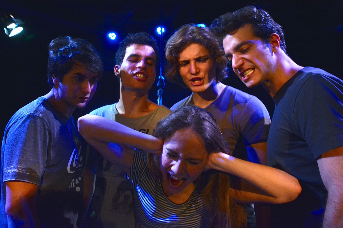 Nell’estate dell’86 una violenza orrenda, dolorosa fu perpetrata a Hibbutz Shomrat nel nord israele. L’intero paese fu scioccato. ..7 ragazzi di circa 17 anni ripetutamente stuprarono una ragazza di 14 anni abusandone sia fisicamente che psicologicamente. Questo tragico e vergognoso fatto fu ispirazione per per il più famoso e il più grande successo teatrale mai scritto nella drammaturgia israelita. Un testo che non solo denuncia la violenza in se ma pone a confronto uomo/donna donna/uomo amico/amica essere umano/ solitudine. ..vita. Oggi in Italia raccontiamo questa storia. 5 Attori che hanno dai 24 ai 28 anni, interpretano il momento e il dopo di una violenza tra rumori notturni, altalene, palloni, giochi di ragazzi violati sotto una luna piena di sangue. E a sorpresa i ragazzi e la ragazza diventano gli avvocati, la difesa, l’accusa del giorno dopo. ..e un altalena vuota dondola sola, fa un rumore…come un lamento infinito in cerca di un perché.