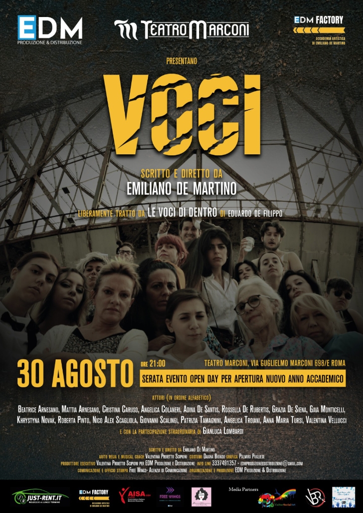 Voci è una commedia amara, liberamente adattata da Emiliano De Martino da “Le Voci di Dentro” è fortemente influenzata dall’apporto degli interpreti, dei loro pensieri e dei loro mondi che portano all’interno dello spettacolo stesso. Si alternano momenti estremamente brillanti e surreali ad attimi di riflessioni veraci, dirette. Guida tutto una sapiente regia quasi cinematografica che gioca con i quadri alternati delle scene, con le luci e le ottime scelte musicali che si alternano a momenti di musica live. L’intreccio dialettale dei vari personaggi colora in modo concreto le loro anime e i loro caratteri, portandoli molto vicini al pubblico in un gioco delle parti davvero avvincente.